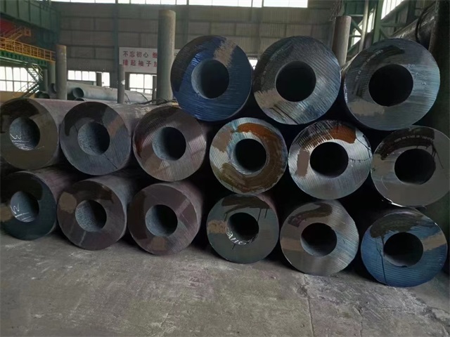 儋州45#无缝钢管调质处理后零件具有较好的综合机械性能,广泛应用于各种关键的构造零件,尤其是那些在交变负载下工作的曲轴、螺栓、齿轮及轴类等。但表面硬度较低,不耐磨。可用调质+感应淬火提升零件表面硬度。